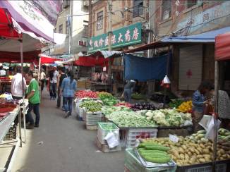 場所は901からちょっと南に下ったところ。ここ一帯は昔日本人が住んでいた日本人街。つまり、青島でいちばん古いところ。趣も建物もそのまま残っています。市場も生鮮食品から日用品まで種類豊富でピエンイー。市場を歩くと、何か地元青島の雰囲気を味わえます。一味違った青島の原点の空気をぜひ一度味わってみてください。