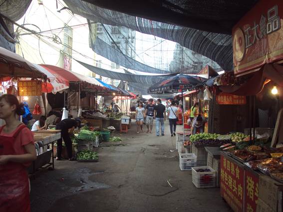 ここには朝鮮族の人もたくさんいるらしく、韓国料理のお店やキムチなど韓国系の食品も充実。その他、中国の小吃類のお店もたくさん。
